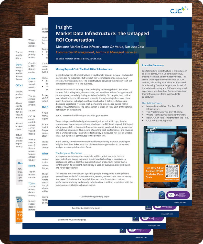 Capital markets infrastructure is typically seen as a cost centre, yet it underpins revenue, trading resilience, and competitive edge. This article challenges the over-reliance on TCO metrics, advocating instead for an ROI-based lens. Drawing from the long-term mindset of the aviation industry and CJC’s on-the-ground experience, we show how firms can transform their infrastructure from overhead into opportunity.
